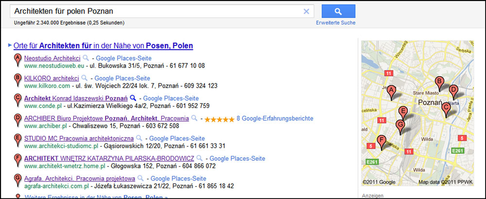 Zum Anderen waere es ganz ratsam sich mit der SAPR (Vereinigung der polnischen Architkten) in Posen in Verbindung zu setzen um rechtliche Fragen zu klaeren wie z.B. welche Lizenz du brauchst um in Polen ueberhaupt als Architekt arbeiten zu duerfen. Sie hat noch zwei groessere Firmen genannt (Agrobex und Budimex) die an ausl. Architeken Bedarf haben koennten.
