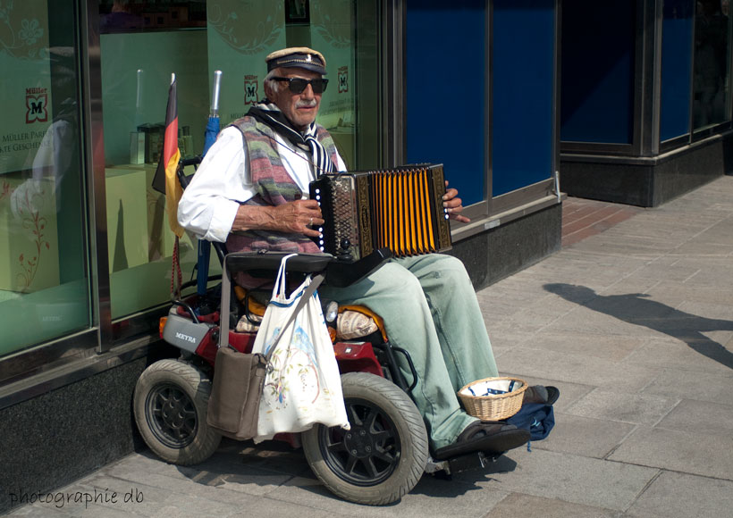• Hier in München müssen sich, zumindest im Stadtzentrum, Straßenmusiker eine behördliche Erlaubnis holen um Auftreten zu können. Die bekommt nicht jeder sondern nur Musiker die man auch wirklich so nennen kann. Entsprechend ist das Angebot hier auch ziemlich hochkarätig und sehr professionell aufgezogen. Es sind Musiker aus den unterschiedlichsten Ländern unserer Erde mit teilweise sehr gewöhnungsbedürftigen aber interessanten Darbietungen. Es ist teilweise schon wie ein Open-Air Konzert mit freiwilligem Eintritt. Sofern mir die Musik gefällt und ich mir das eine Weile anhöre, dann gebe ich auch gerne ein paar Euros - das ist es mir wirklich Wert.