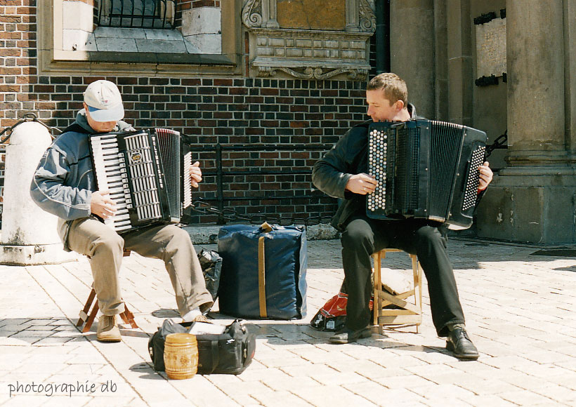 In Krakau gibt es eine Gruppe die rund um den Marktplatz wandert - von Lokal zu Lokal. Das habe ich schon als etwas dreist empfunden. Die sind mit 3-4 Leuten, spielen 2-3 Stückchen vor jedem Lokal und lassen dann den Hut rum gehen. Wenn man nix gibt, dann wird der Hut auch noch mal kurz hingehalten. Das ist schon fast Zwang. Wenn ich was gebe dann freiwillig. Mich nervte die Musik, da ich nur meine Ruhe haben wollte. Habe mich extra etwas weiter weg gesetzt, aber die "Marschrichtung" der Musiker falsch kalkuliert.