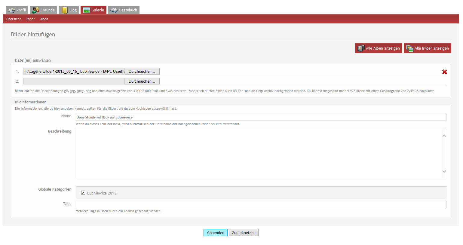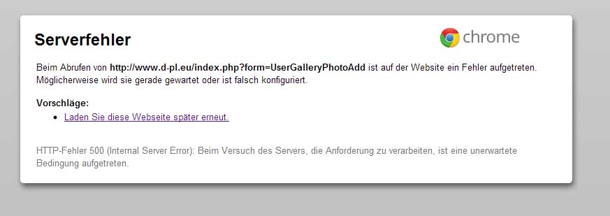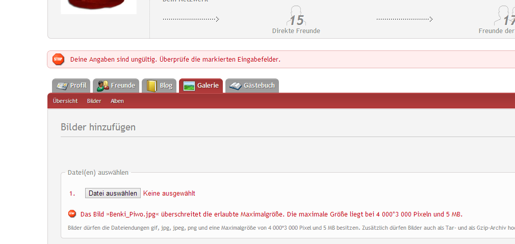 Fehlermeldung beim Foto Hochladen