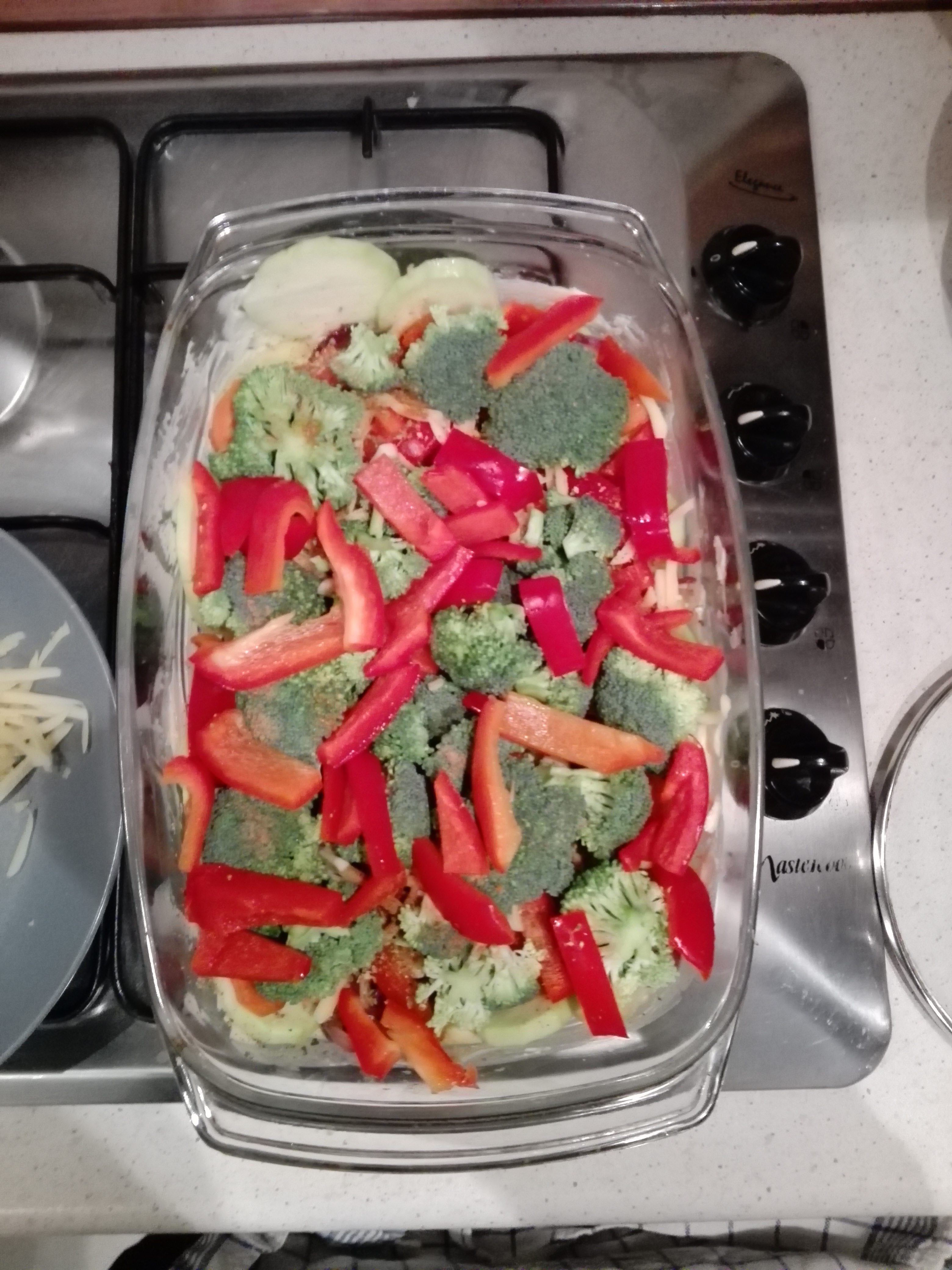 Auf dem 2. Foto Gemueseauflauf, noch ohne Kaese