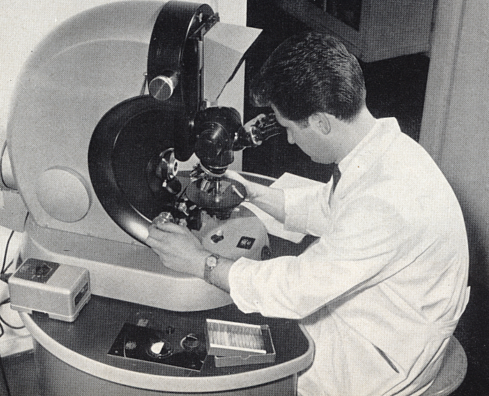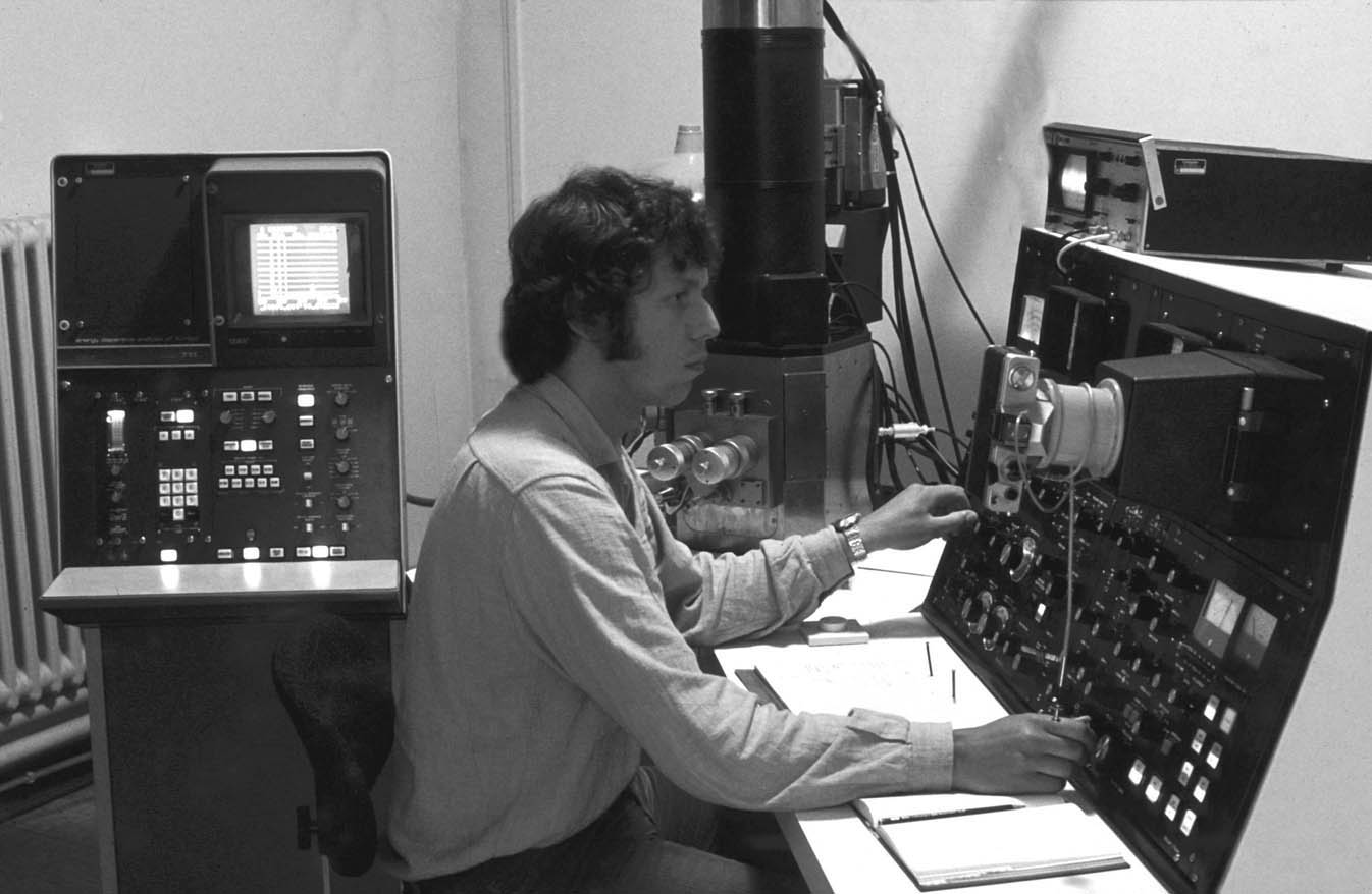 Eigentlich sah es eher so aus ... und an so einem Gerät habe ich tatsächlich am KIT (Karlsruher Institut für Technologie), damals noch FZK (Forschungszentrum Karlsruhe), das Rasterelektronenmikroskop erlernt (dieses Bild fand ich auf Wikipedia). Aus den 1970ern, jeden Tag musste Stickstoff nachgefüllt werden, mit einer analogen Kamera ausgestattet und mit tausend Drehknöpfen - wie in früher Star Trek-Folgen
