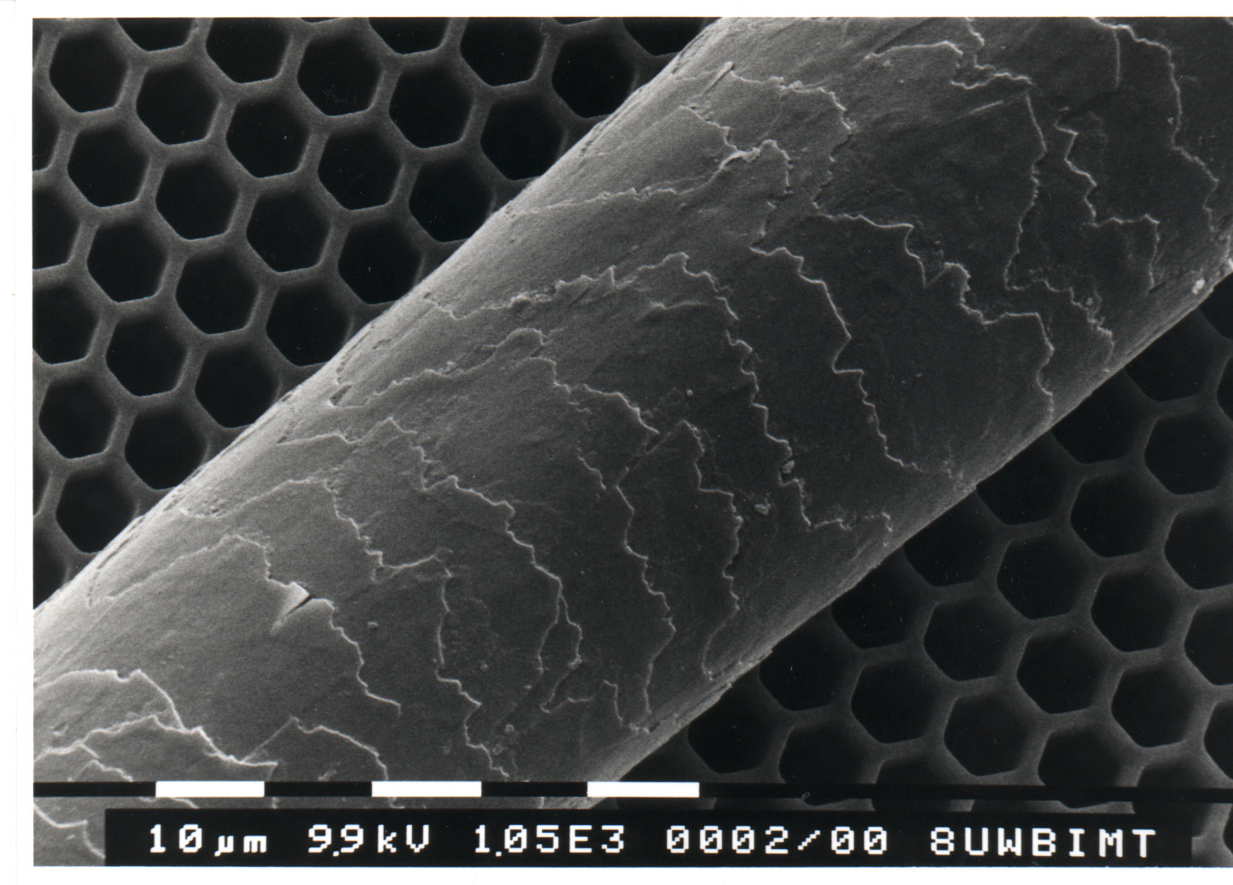 Bild 4 ebenfalls ein menschliches, gesundes Haar mit eng anliegender Schuppenschicht