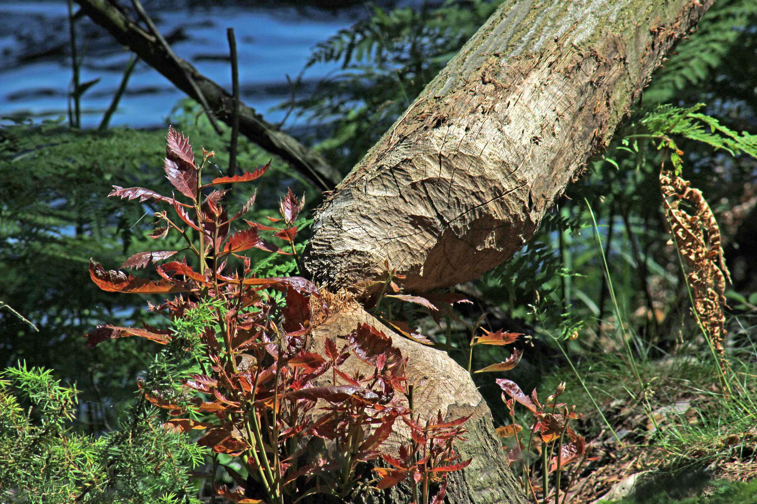 Viele Bäume lagen so gefällt am Seeufer. Wie ich finde, sind die richtig "sauber" abgenagt